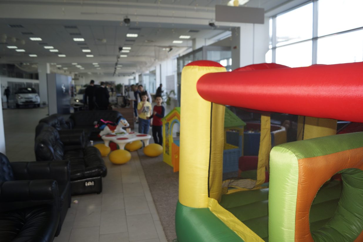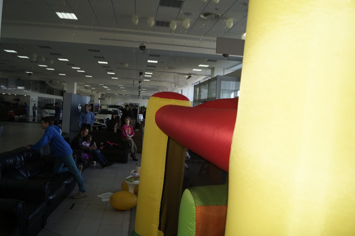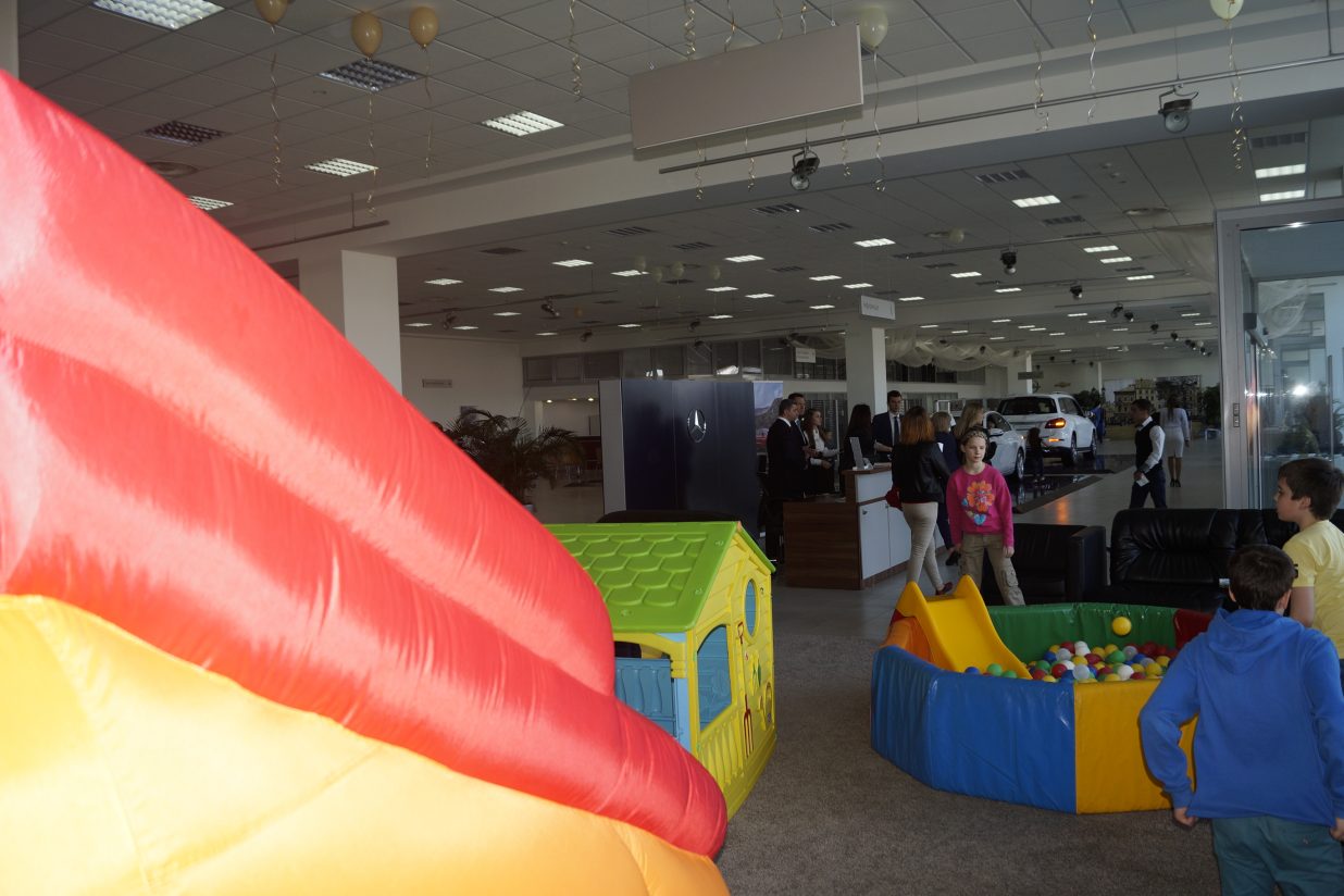 Доставка, установка, демонтаж сухого бассейна с шариками и горочкой, батут надувной, игровой домик в салон – магазине “Мерседес”. На презентации новых моделей автомобилей, взрослые знакомились с новинками в мире авто “Мерседес”, а дети весело и на “некотором, расстоянии” прекрасно играли в игровой детской зоне.